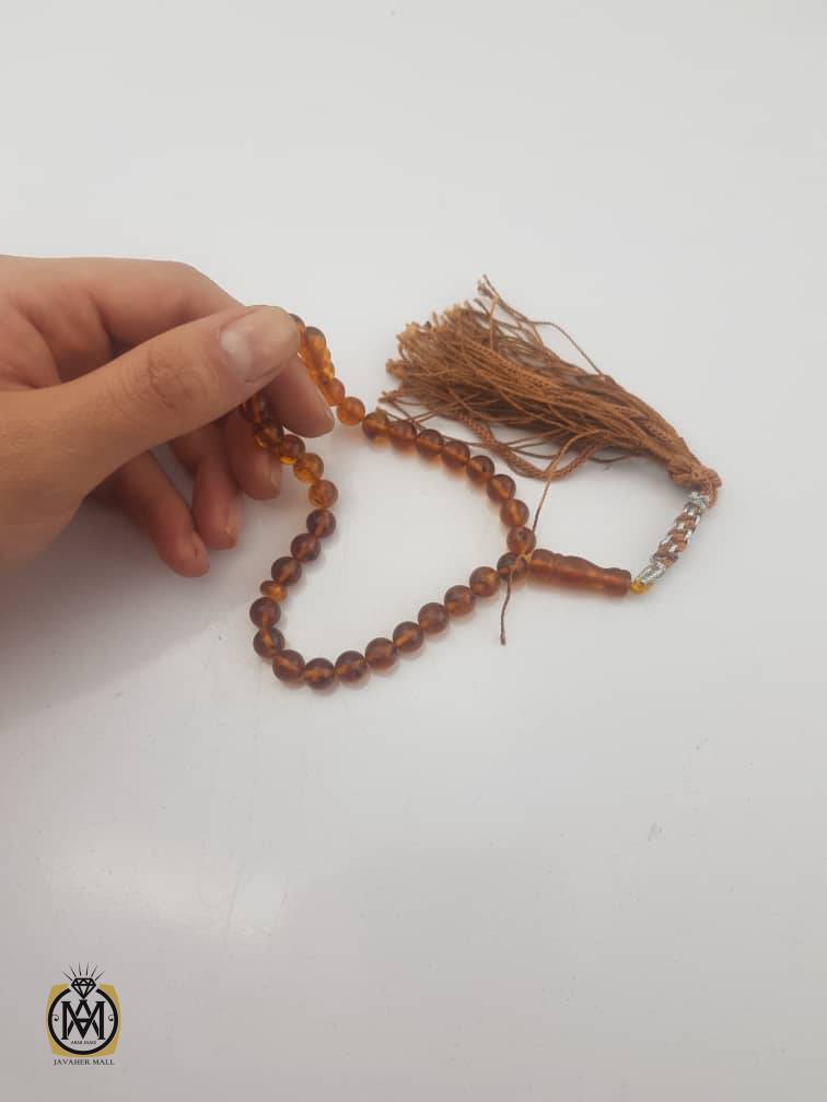 تسبیح کهربا ۳۳ دانه بولونی شفاف روسیه دانه گرد – ۴۴۰۰